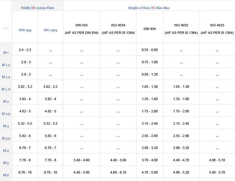 DIN 934, DIN 555, IS 1364, IS 4032, IS 4033, IS 4034