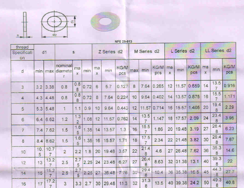 DIN 125, DIN 9021, BS 4320 Form ( A, B & C )